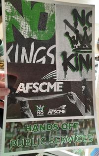 No Kings picket signs outside the Washington State Labor Council's building (Rally / March) Sponsor: AFSCMA County: Thurston |