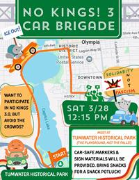 No Kings 3 Car Brigade (Rally / March) Sponsor: Evergreen Resistance County: Thurston |